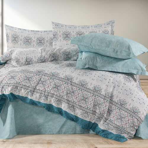 | Dimensiuni: – Cearșaf pat 240x260cm – Cearșaf pilotă 200x230cm – 2 Fețe pernă: 50x70cm |
